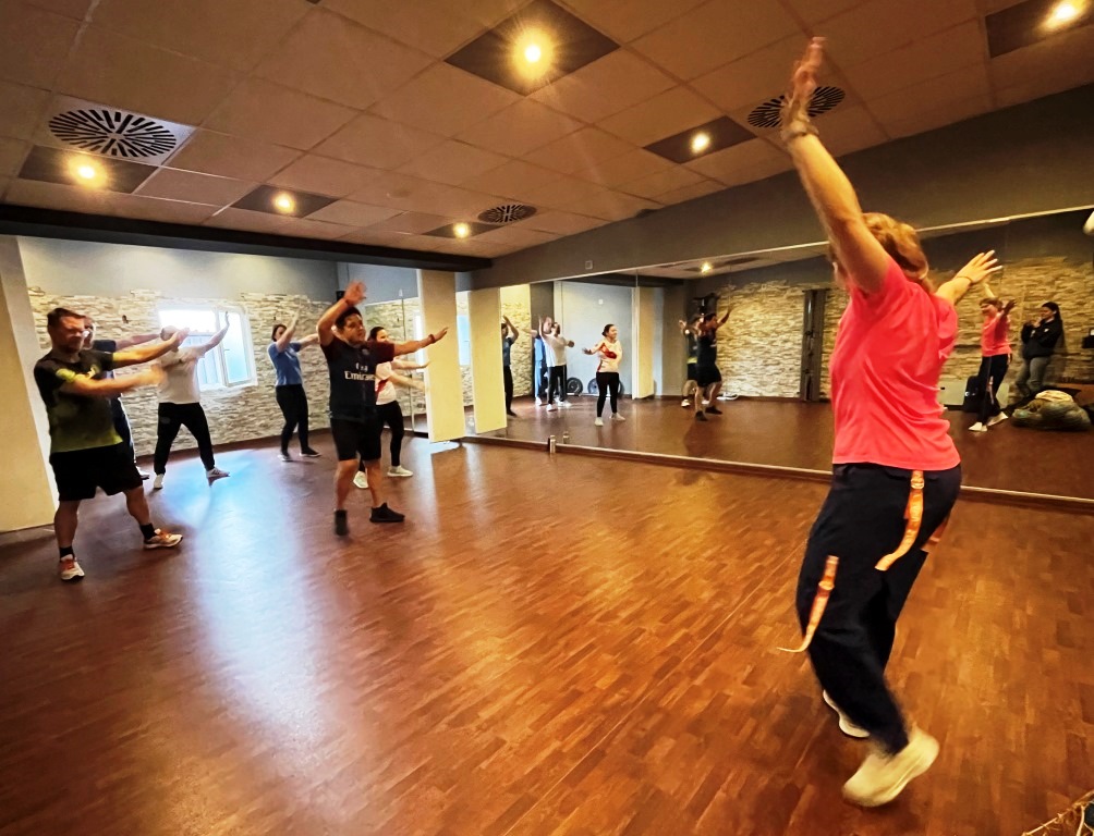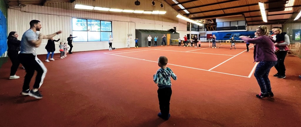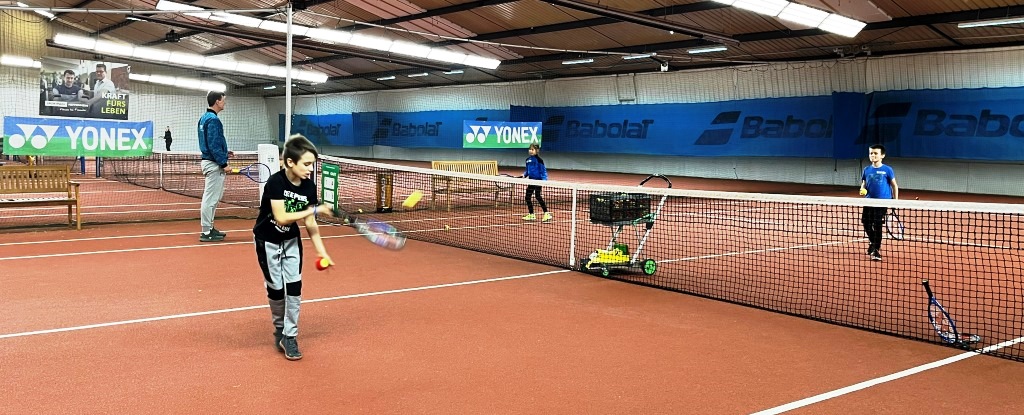 Sabrina hat mit stimmungsvoller Musik die Teilnehmer beim Zumba zum Tanzen gebracht und Jan und Marco haben in der großen Halle die Grundlagen des Tennis-Spiels vermittelt.