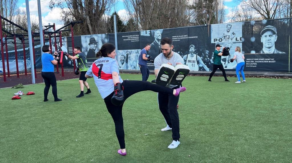 Durch die frühlingshaften Temperaturen wurde das Boxtraining von Trainer Jan-Vincent mit Elementen aus dem Kickboxsport wieder nach draußen verlegt.